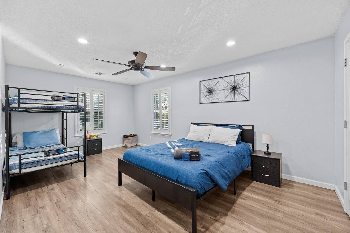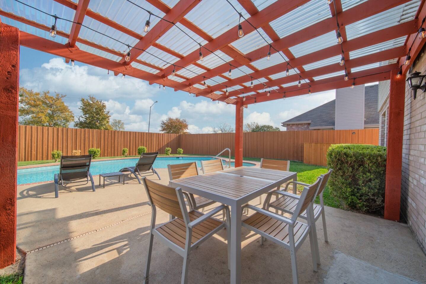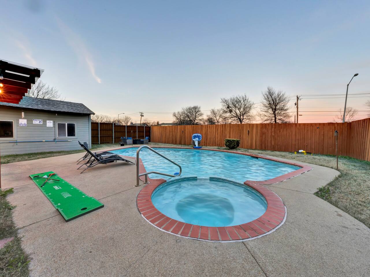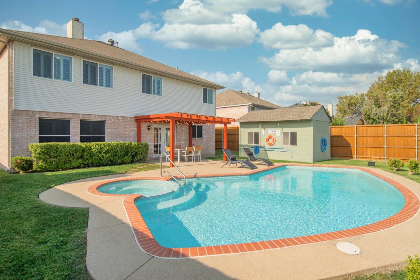The house has plenty of space for everyone to unwind. With 5 bedrooms, 2.5 baths, and room for up to 12 guests, it’s set up for families and groups who want comfort and fun under one roof. Between the heated pool, hot tub, backyard games, and the garage game room, there’s always something to do. Relax, play, and reconnect! WHY YOU'LL LOVE BLUE HAVENS: 🏊 Heated pool w/ LED basketball + hot tub 🔥 Backyard firepit + outdoor dining & lounge 🎱 Garage game room (pool, darts, cards, LED lighting) ⛳ Bocci ball, spikeball, putting green 🛋 Smart TVs + LIVE TV 🔥 Indoor Fireplace 🛜 High-speed WiFi 🍳 Fully stocked kitchen w/ LED mood lighting + breakfast bar 👶 Crib, high chair + Dinnerware for kids 🐾 Pet-friendly 🖥️ Dedicated Workspace 🛏 Sleeps 12 across 5 bedrooms (see below) 🚗 3-car parking in a quiet neighborhood 🌊 Minutes to Lake Ray Hubbard & 25 min to Downtown Dallas 🛏️ SLEEPING SETUP Master Suite: King bed, luxury bath, crib, Smart TV, large closet Bedroom 2: 1 Queen bed Bedroom 3: 1 Queen bed Bedroom 4 (Main Floor): 1 Queen bed Bedroom 5: Twin-over-twin bunk + 1 Queen bed ~ All bedrooms feature cozy bedding, ample storage, and a calm place to unwind. 🎮 GAME ROOM Full-size pool table Dartboard + card table LED mood lighting Couch seating (convertible bench) 🍳 KITCHEN & DINING Fully stocked with cookware, utensils & kid dinnerware Gas stove + LED mood lighting Keurig Coffee and Drip Coffee Machines (Coffee on the House!) Breakfast bar + dining table for group meals High chair included Propane grill for outdoor feasts 🛁 BATHROOMS (2.5 Total) Master ensuite w/ luxury bath Guest bath w/ shower/tub combo Half bath for convenience Stocked with fresh towels, shampoo, conditioner, body wash and hair dryer 🌲 BACKYARD Heated pool + hot tub LED pool basketball (syncs to music!) Firepit with seating & s’mores setup Putting green, bocci ball & spikeball Outdoor lounge + dining area 🛜 COMFORT & TECH Smart lock for easy self check-in High-speed WiFi & Smart TVs Central A/C + heating Washer & dryer w/ detergent 3-car driveway parking 📍 WHAT'S NEARBY Lake Ray Hubbard – minutes away The Harbor Rockwall – 10 min (dining, shops, lake views) Downtown Dallas – 25 min Dallas Love Field (DAL) – 35 min 📏 HOUSE RULES No parties or unregistered guests No smoking/vaping indoors Quiet hours: 10pm–8am Pets welcome (with approval - Pet Fee applies) 🔑 GUEST ACCESS Guests have full access to the home, backyard, and all amenities. Check in easily with a personalized smart lock code. 🌟 More Than a Stay. It’s Blue Havens. Whether it’s a family reunion, lake trip, or group getaway, we’ve created the perfect space to laugh, play, and make memories. 📅 Dates go quickly—reserve your stay at Blue Havens today!