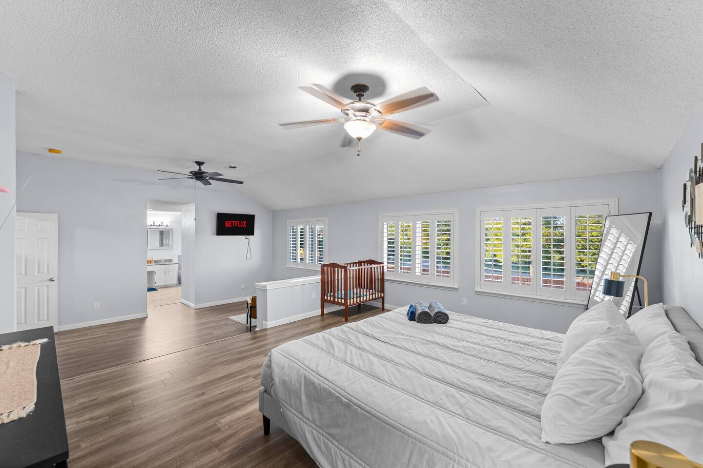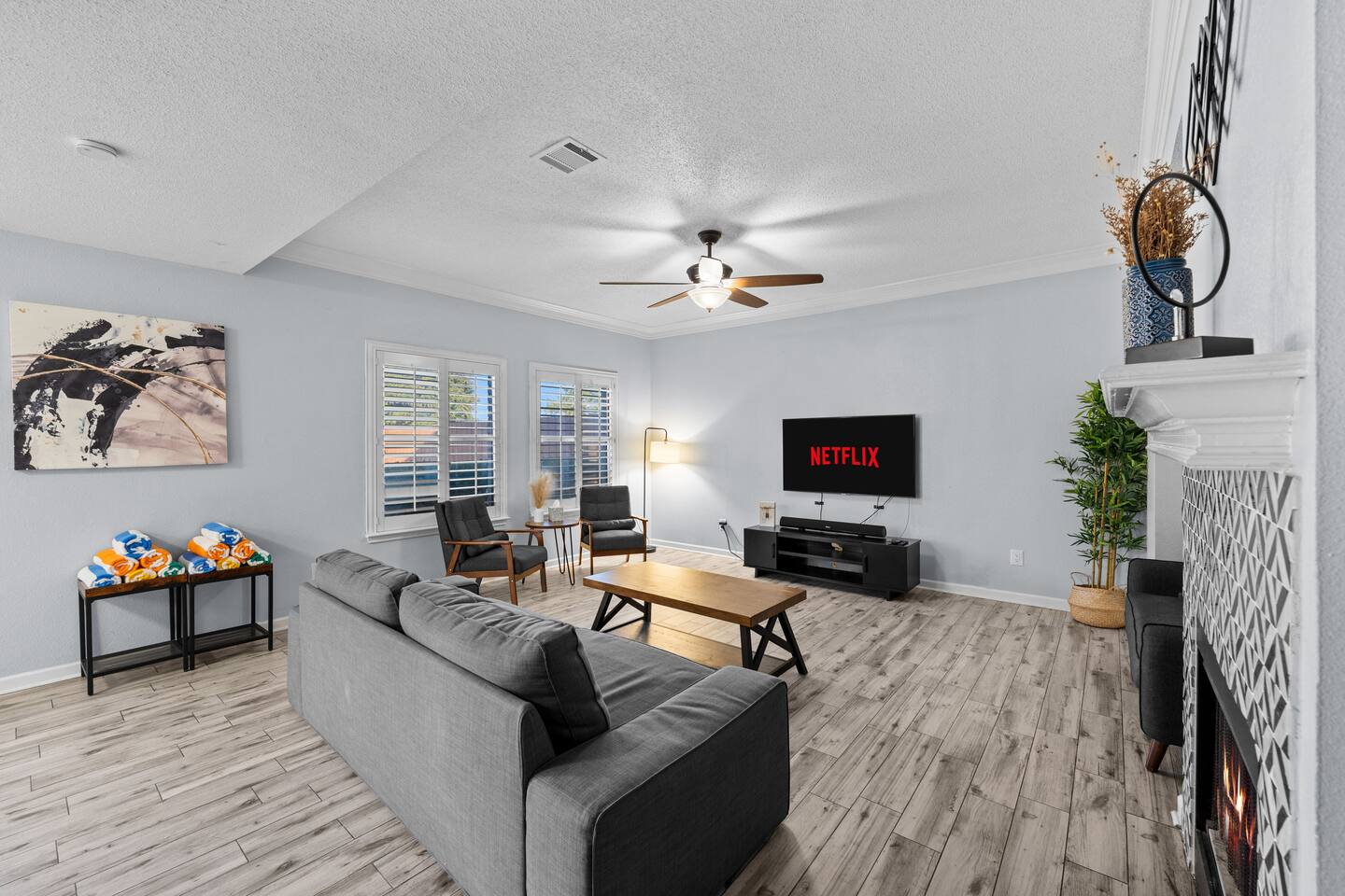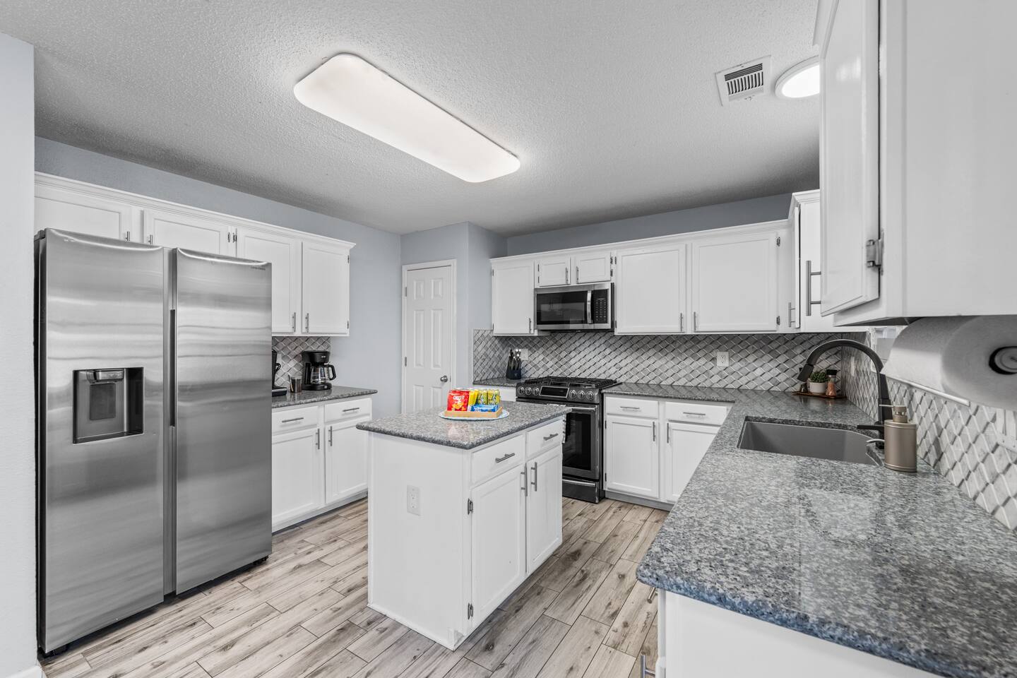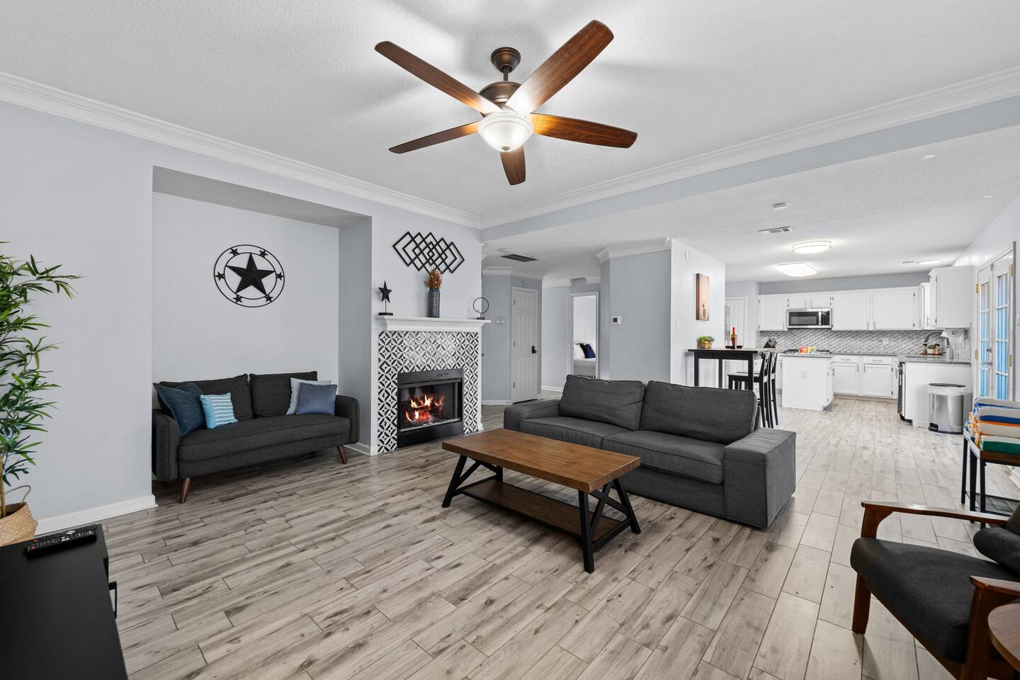 The house has plenty of space for everyone to unwind. With 5 bedrooms, 2.5 baths, and room for up to 12 guests, it’s set up for families and groups who want comfort and fun under one roof. Between the heated pool, hot tub, backyard games, and the garage game room, there’s always something to do. Relax, play, and reconnect! WHY YOU'LL LOVE BLUE HAVENS: 🏊 Heated pool w/ LED basketball + hot tub 🔥 Backyard firepit + outdoor dining & lounge 🎱 Garage game room (pool, darts, cards, LED lighting) ⛳ Bocci ball, spikeball, putting green 🛋 Smart TVs + LIVE TV 🔥 Indoor Fireplace 🛜 High-speed WiFi 🍳 Fully stocked kitchen w/ LED mood lighting + breakfast bar 👶 Crib, high chair + Dinnerware for kids 🐾 Pet-friendly 🖥️ Dedicated Workspace 🛏 Sleeps 12 across 5 bedrooms (see below) 🚗 3-car parking in a quiet neighborhood 🌊 Minutes to Lake Ray Hubbard & 25 min to Downtown Dallas 🛏️ SLEEPING SETUP Master Suite: King bed, luxury bath, crib, Smart TV, large closet Bedroom 2: 1 Queen bed Bedroom 3: 1 Queen bed Bedroom 4 (Main Floor): 1 Queen bed Bedroom 5: Twin-over-twin bunk + 1 Queen bed ~ All bedrooms feature cozy bedding, ample storage, and a calm place to unwind. 🎮 GAME ROOM Full-size pool table Dartboard + card table LED mood lighting Couch seating (convertible bench) 🍳 KITCHEN & DINING Fully stocked with cookware, utensils & kid dinnerware Gas stove + LED mood lighting Keurig Coffee and Drip Coffee Machines (Coffee on the House!) Breakfast bar + dining table for group meals High chair included Propane grill for outdoor feasts 🛁 BATHROOMS (2.5 Total) Master ensuite w/ luxury bath Guest bath w/ shower/tub combo Half bath for convenience Stocked with fresh towels, shampoo, conditioner, body wash and hair dryer 🌲 BACKYARD Heated pool + hot tub LED pool basketball (syncs to music!) Firepit with seating & s’mores setup Putting green, bocci ball & spikeball Outdoor lounge + dining area 🛜 COMFORT & TECH Smart lock for easy self check-in High-speed WiFi & Smart TVs Central A/C + heating Washer & dryer w/ detergent 3-car driveway parking 📍 WHAT'S NEARBY Lake Ray Hubbard – minutes away The Harbor Rockwall – 10 min (dining, shops, lake views) Downtown Dallas – 25 min Dallas Love Field (DAL) – 35 min 📏 HOUSE RULES No parties or unregistered guests No smoking/vaping indoors Quiet hours: 10pm–8am Pets welcome (with approval - Pet Fee applies) 🔑 GUEST ACCESS Guests have full access to the home, backyard, and all amenities. Check in easily with a personalized smart lock code. 🌟 More Than a Stay. It’s Blue Havens. Whether it’s a family reunion, lake trip, or group getaway, we’ve created the perfect space to laugh, play, and make memories. 📅 Dates go quickly—reserve your stay at Blue Havens today!